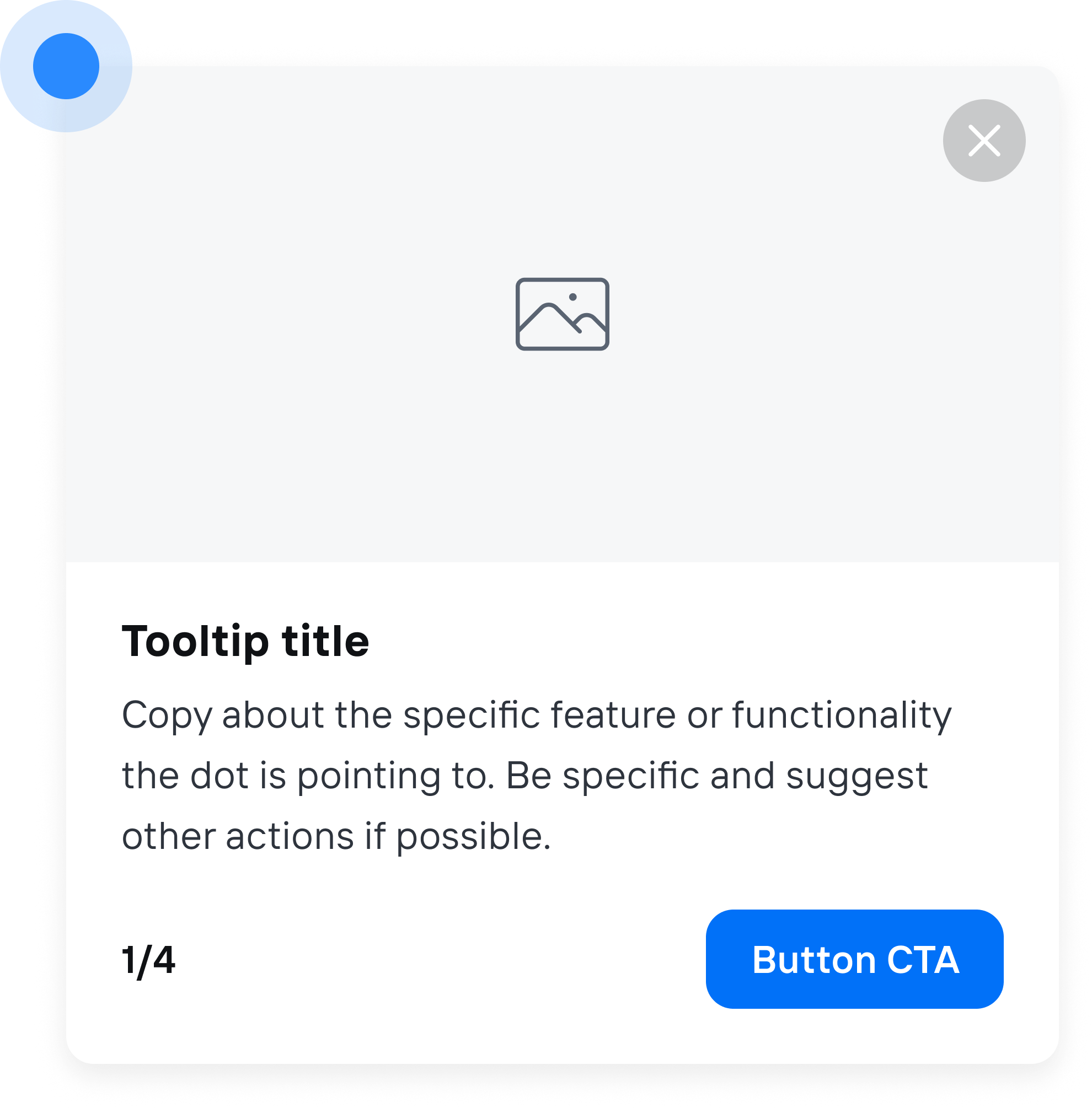 Sometimes you may want to hide the CTA button on a single Step for a user to take an action in your application rather than simply continuing the tour on every button click. To do this, simply omit theprimaryButton.title property in the YAML config: