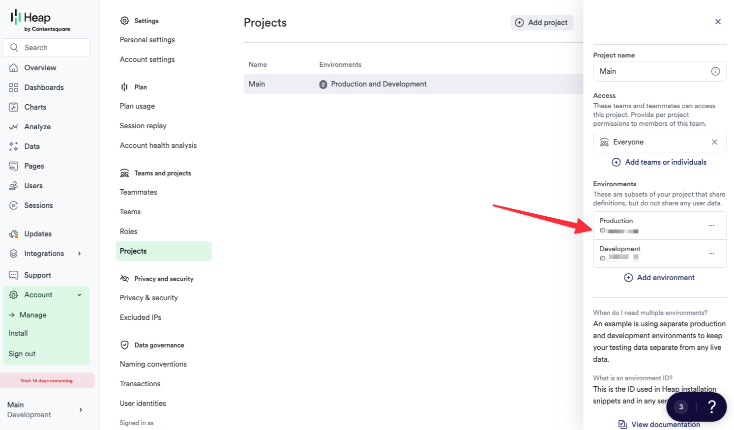 Click the appropriate project and environment and copy the numeric Environment ID.